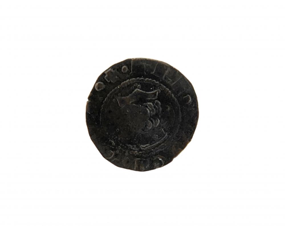Tag: Lodovico d'Aragona, 1 Denaro, Crowned King Design, Patent Cross, Numismatic treasure, Sicilian coin, Historical Sicilian currency, King's profile coin, Circle of beads design, GRA REX SICILIAE