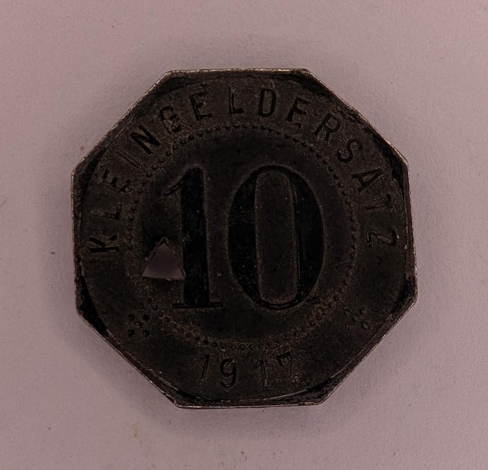 Tag: 10 Pfennig Tübingen, Universitätsstadt Tübingen, 1917 Coin, German Kleingeldersatz, Tübingen Coat of Arms