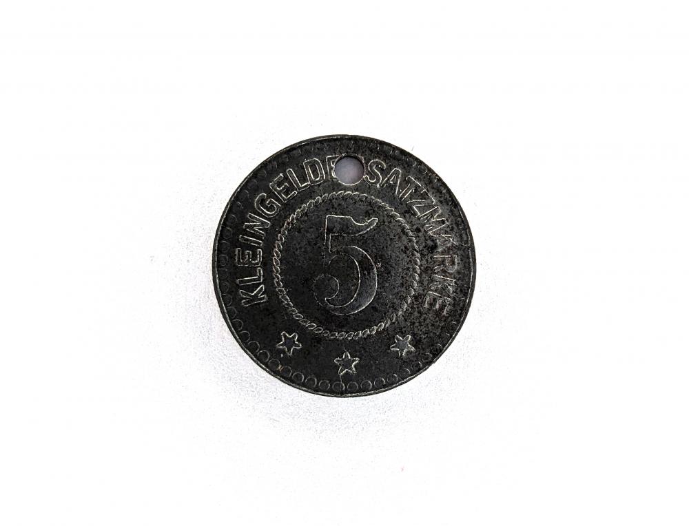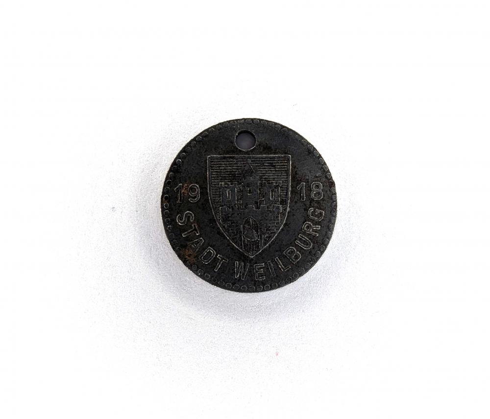 Tag: 5 Pfennig, Weilburg an der Lahn, 1918 Coin, STADT WEILBURG, KLEINGELDERSATZMARKE, Numismatic Treasure, Coinantiquariat Collection, Pearl Rim Design, German Historic Coins, Weilburg Coinage.