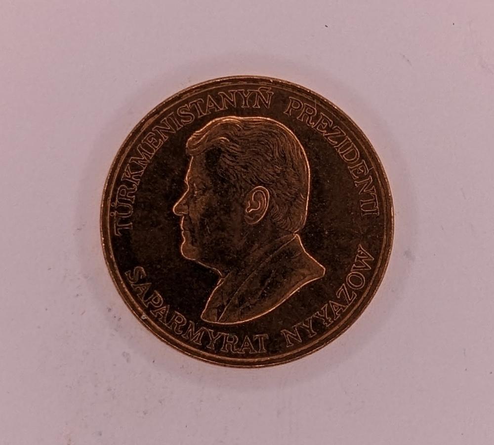 Tag: 5 Tennesi Coin, President Saparmurat Niyazov, Turkmenistan Numismatics, Turkmenistan Coins, Turkmenistan History, Coin Collection, Exonumia, Political Figures on Coins, Turkmenistan Presidents, Numismatic Collectibles, Numismatic Memorabilia