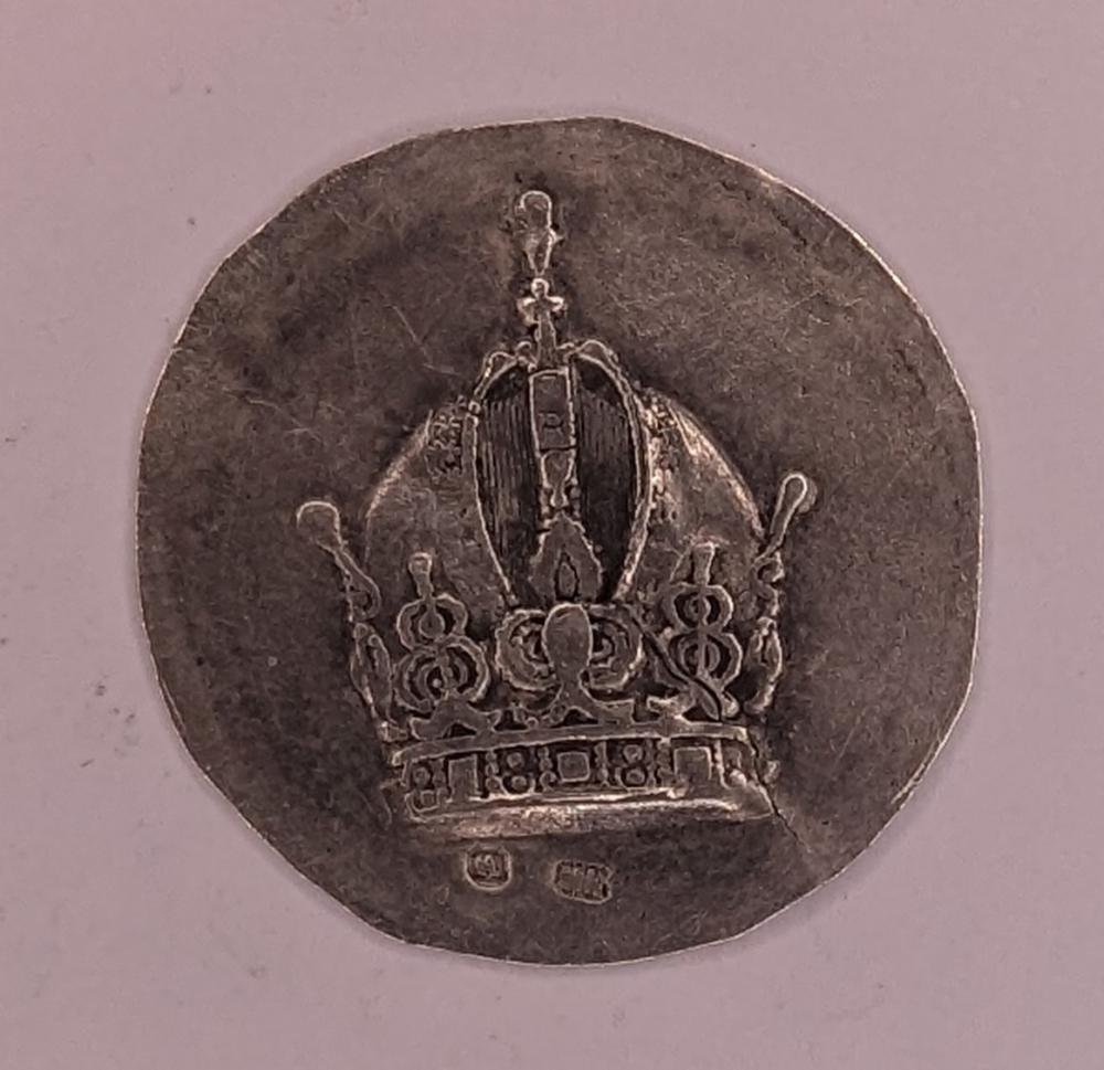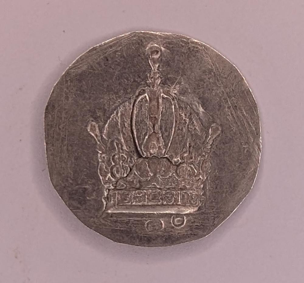 This Austrian silver jeton, undated and chipped on lower right side, features a prominent Royal Austrian crown on its face. The reverse is uniface, making this piece a distinct representation of 18th-century Austrian exonumia.