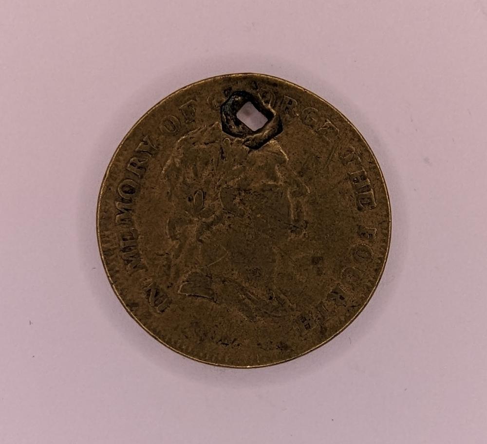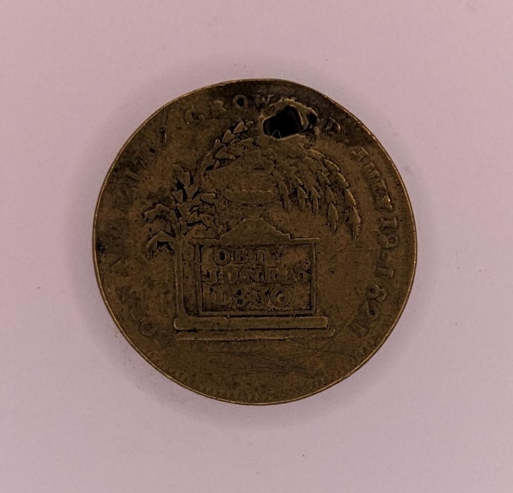 This is a second variation of the famous medallion, as in this one, the bust is facing to the right. Nevetheless, celebrate the legacy of King George IV with this seond variantexquisite memorial medallion. The obverse of the medallion features a masterfully engraved laureate draped bust of George IV, facing left, showcasing the likeness of the king in his later years. The inscription 'IN MEMORY OF GEORGE THE FOURTH' surrounds the image, commemorating his reign. On the reverse, the medallion depicts a weeping willow bending over a funerary urn on a plinth, symbolizing mourning and remembrance. The inscription 'BORN AUG 12 1762 CROWNED JULY 19 1821 OBIT JUNE 26 1830' outlines the significant milestones in the king's life. This beautiful medallion is a tribute to the life and reign of King George IV, who played a significant role in British history during a time of cultural and political change.