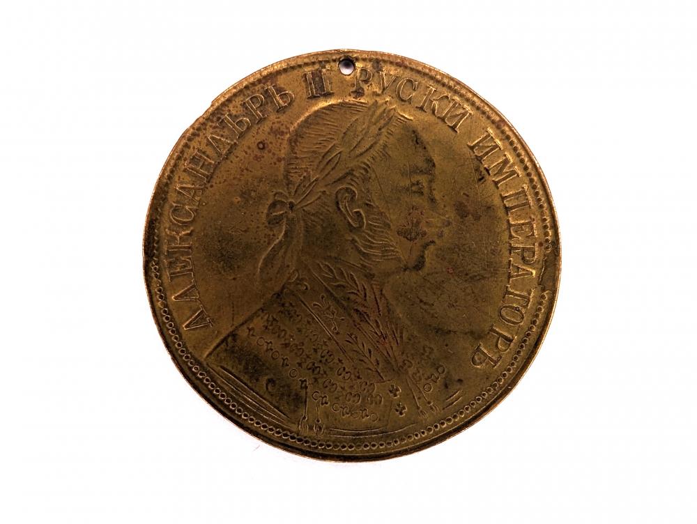 Tag: Aleksander II, Russian Emperor, 1905, Replica Pendar, Brass Token, Russian Empire, Coinantiquariat, Bulgarian Folklore, Traditional Clothing, Numismatic Collectible.