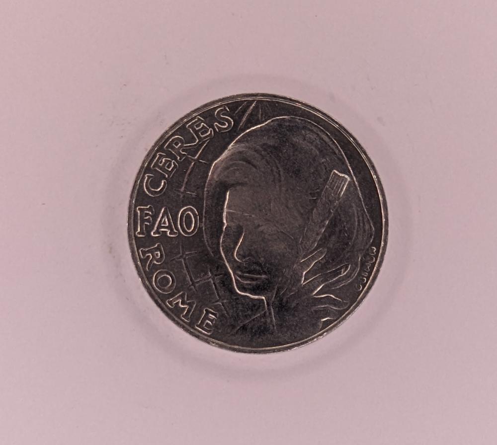 Tag: Token, Ceres, FAO, Sophia Loren, Numismatic Collectibles, 20th Anniversary, Agricultural Symbolism, Philanthropy, Cultural Heritage, Numismatic Art, Historical Medal, Food for All, United Nations, Numismatic Heritage