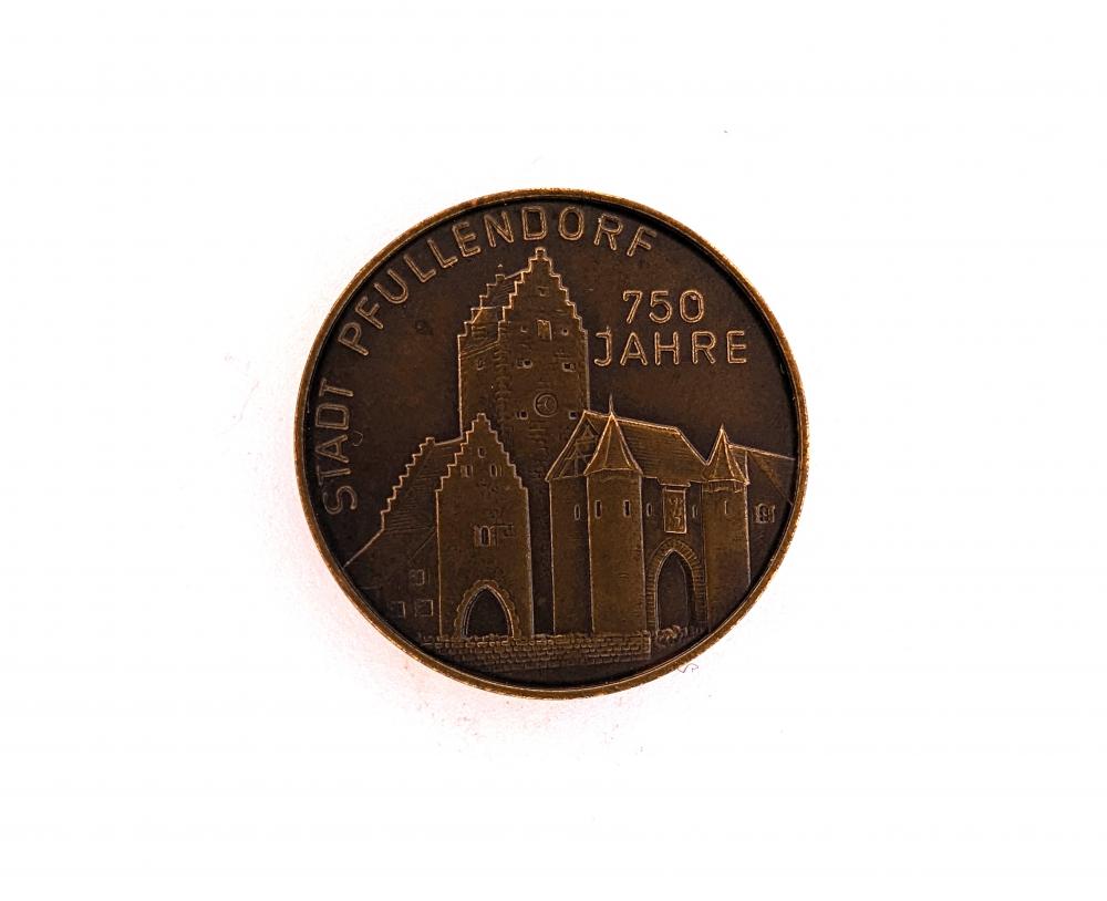 Tag: Medal, token, souvenir, Pfullendorf Anniversary, 750 Years, Castle, Coat of Arms, Coinantiquariat, Numismatics, German Commemorative Medals, Pfullendorf History.